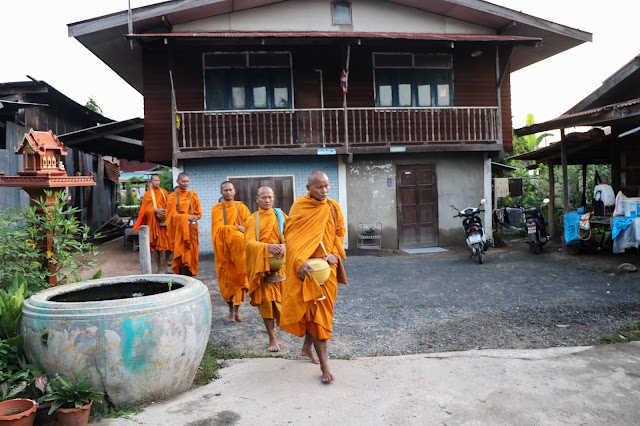 อรุณสวัสดิ์...ตี 5 เจ้าบ้านมาปลุก ให้ตื่นขึ้นมาสูดออกซิเจนเข้าเต็มปอด และเตรียมตัวใส่บาตรยามเช้า เป็นการทำบุญตามวิถีชีวิตชาวบ้านสนวนนอก ทำบุญแล้ว...รู้สึกอิ่มบุญ อิ่มใจ มากๆ