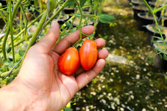 ถึงแล้วสถานีสุดท้ายกับ โรงเรือนปลูกมะเขือเทศ เพื่อนๆเคยไปเก็บสตอเบอรี่ไหม?? อารมณประมาณนั้นเลยครับ อุปกรณ์พร้อม คนพร้อม ทุกอย่างพร้อม...ไม่รอช้า ผมรีบวิ่งเข้าโรงเรือนก่อนใคร หวังจะตัดมะเขือเทศลูกโตๆ แล้วชิมจากต้น...พี่อ้อมบอกว่ามาที่นี่กินเอาให้อิ่ม ไม่ซื้อ ไม่ว่ากัน อยากให้ทุกคนที่มามีความสุข กลับไปพร้อมเกล็ดความรู้ เท่านี้เจ้าของสวนก็มีความสุขแล้ว...