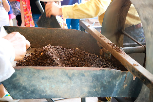 โรงเรือนเลี้ยงใส้เดือน เป็นโรงเรือนที่สร้างขึ้นมาเพื่อทำปุ๋ยมูลใส้เดือน ทั้งใช้ในสวน และส่งขาย พี่อ้อมเล่าให้ฟังตั้งแต่เริ่มต้นกระบวนการนำใส้เดือนมาเลี้ยง จนกระทั้งกระบวนการแยกปุ๋ยด้วยเครื่องแยกปุ๋ย ที่สร้างขึ้นจากภูมิปัญญาชาวบ้าน