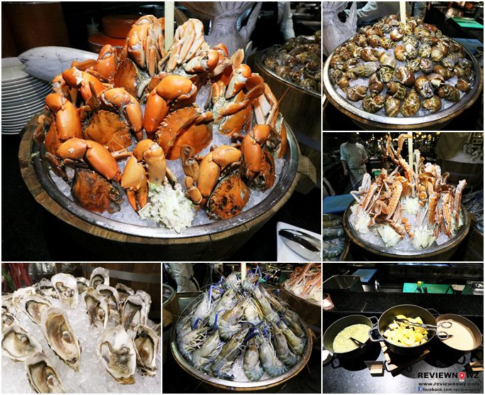 ปูทะเลสดเนื้อดีหวานทำได้ดีอร่อยมากๆถือเป็นเกรดบุฟเฟ่ต์ที่ทำได้ดีในระดับตามสั่งกันเลยทีเดียว นอกจากนี้ยังมีปูม้า กุ้งแม่น้ำ และหอยหวานพร้อมน้ำจิ้มซีฟู้ดรสจัด หรือจะทานสดๆกับหอยนางรมนำเข้าที่เพียงแค่บีบมะนาวก็อร่อยแล้ว แนะนำ