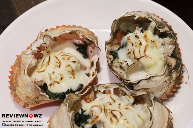 crab thermidor ใช้เนื้อปูรองด้วยผักโขมเห็ดปิดด้วยชีสนำไปอบมาร้อนๆเพราะทำตามสั่งเท่านั้น ทำได้ดี