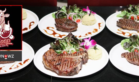 สเต็กเนื้อทีโบนชิ้นใหญ่หนาสะใจดูดี มีความนุ่มหนึบหนับกำลังเคี้ยวดี ปรุงไม่กลบตัวเนื้อ เป็นเมนูขายดีของทางร้าน แนะนำ