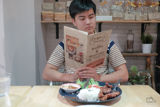 เราสั่งเมนูง่ายๆ อย่าง ข้าวหมูทอด คนละจาน กินง่าย อยู่ง่าย สไตล์เรา