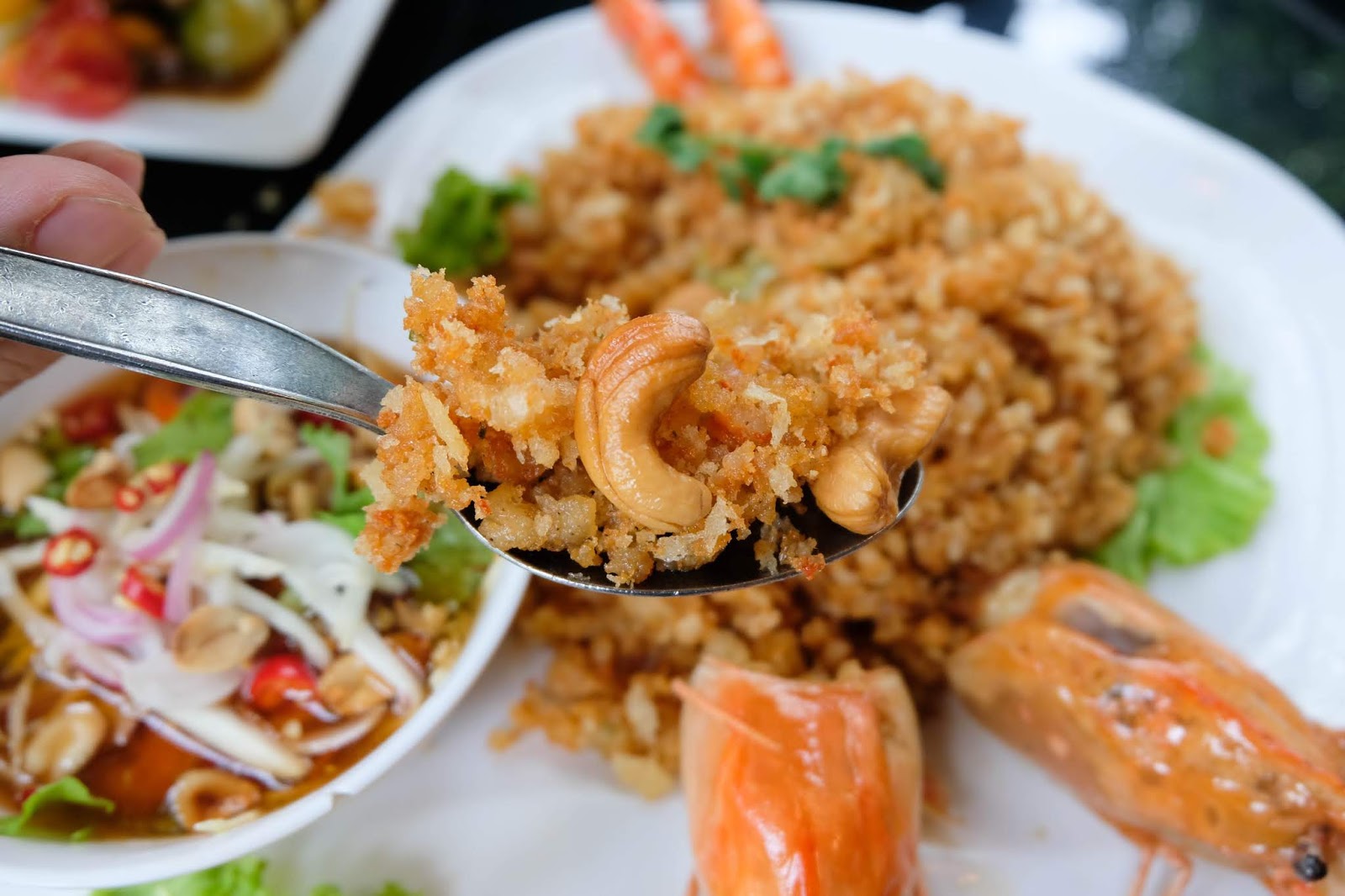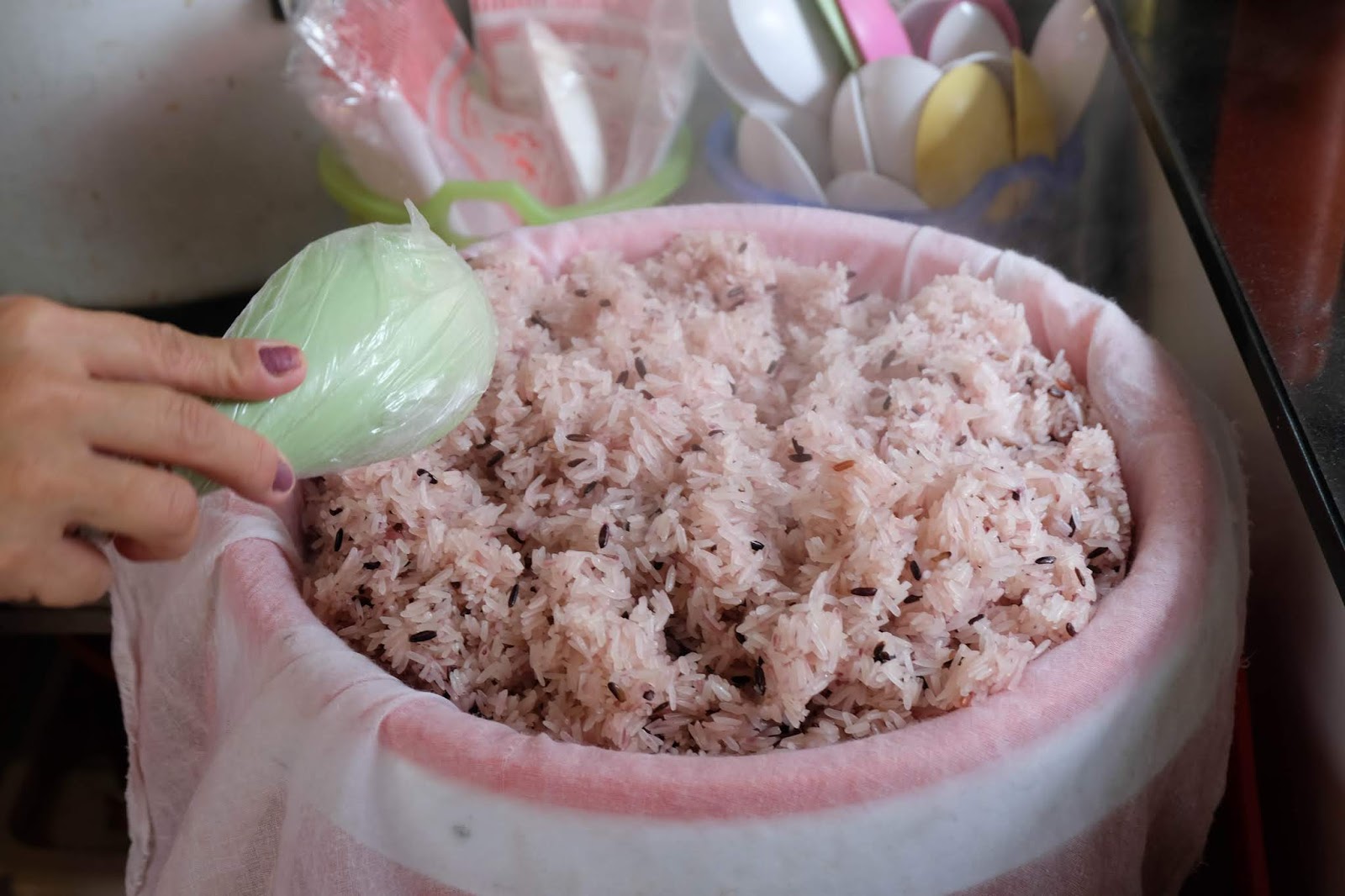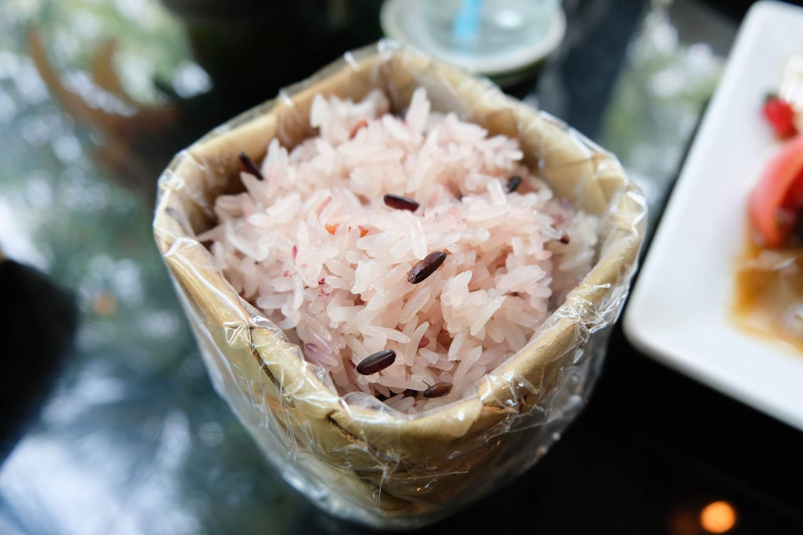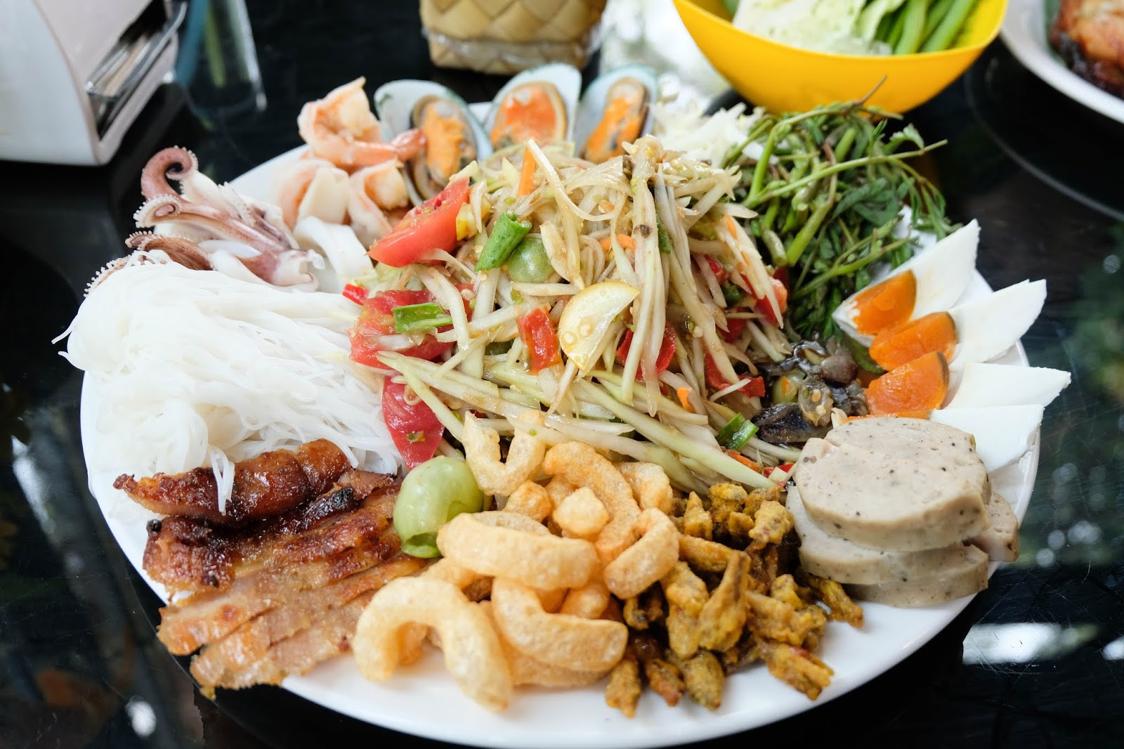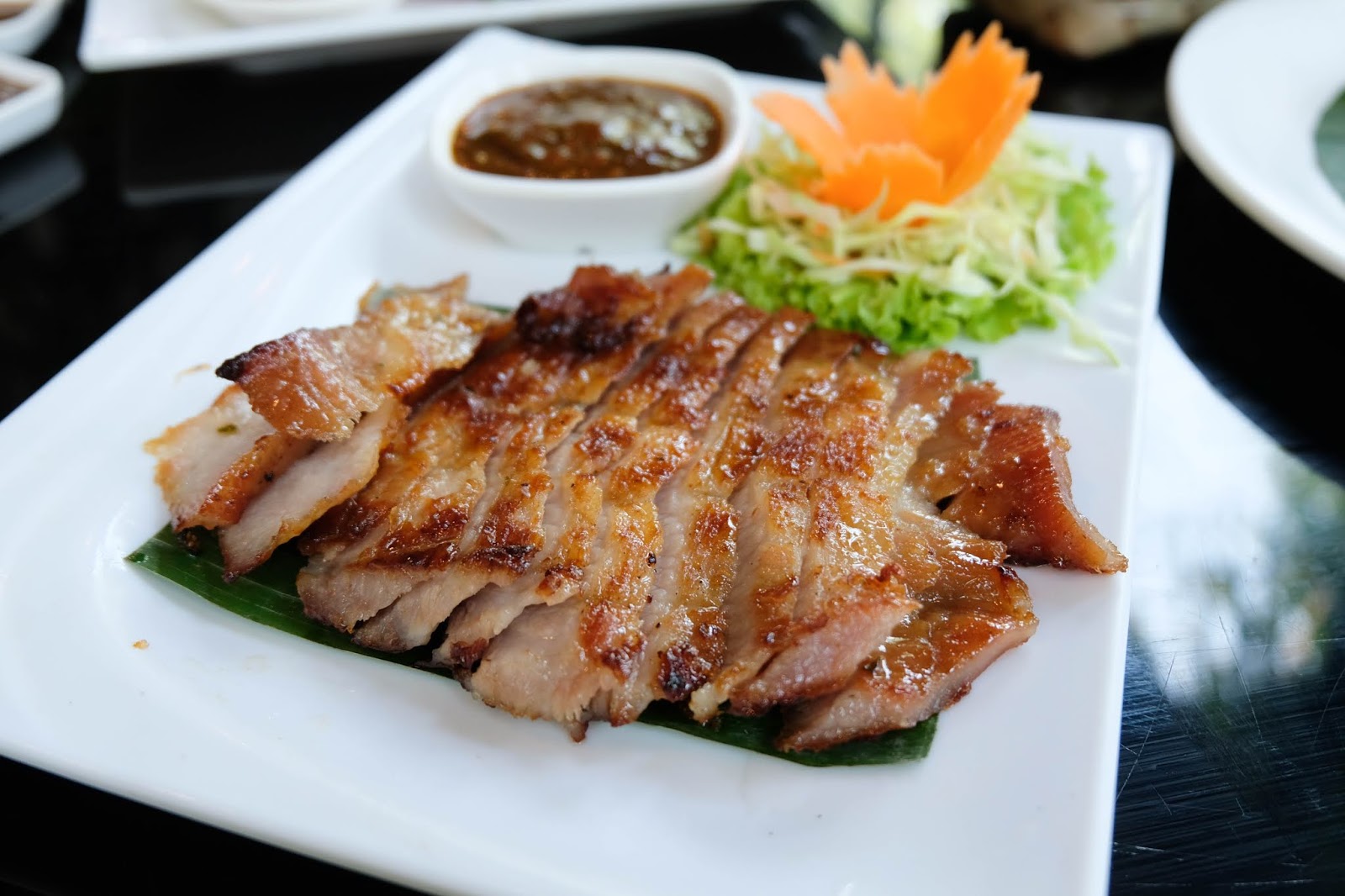 กินแก้มตุ่ย ตะลุยเที่ยว เปิบอาหารไปหลายรายการ ได้แก่ ไก่ย่าง ไก่ย่างหนังกรอบ คอหมูย่างน้ำผึ้ง ยำกุ้งฟู ส้มตำไทย ส้มตำถาดไฮไซ ส้มตำปูปลาร้า ปลาแรดคั่วตะไคร้ ซุปมะเขือ และ ต้มแซ่บหมูตุ๋น เมนูนี้ ขอไฮไลท์ว่า อร่อยเวอร์ เป็นสูตร จปล (จีนปนลาว) ใช้เนื้อหมูขั้วตับ มาตุ๋นยาจีน จนเปื่อยนุ่ม แล้วมาปรุงเป็นต้มแซ่บ รสจัดจ้านกลมกล่อม ซดแล้วติดใจแน่นอน ที่ประทับใจอีกอย่างของร้านนี้คือ “ข้าวเหนียวนึง” เนื้อข้าวเหนียวเป็นเมล็ดนุ่ม สีของเนื้อข้าวเป็นสีข้าวกล่ำอ่อนๆ เพราะเป็นข้าวหุงผสมระหว่าง ข้าวเหนียวเขี้ยวงู กับข้าวเหนียวกล่ำ เย็นแล้วก็ยังนุ่มอร่อย