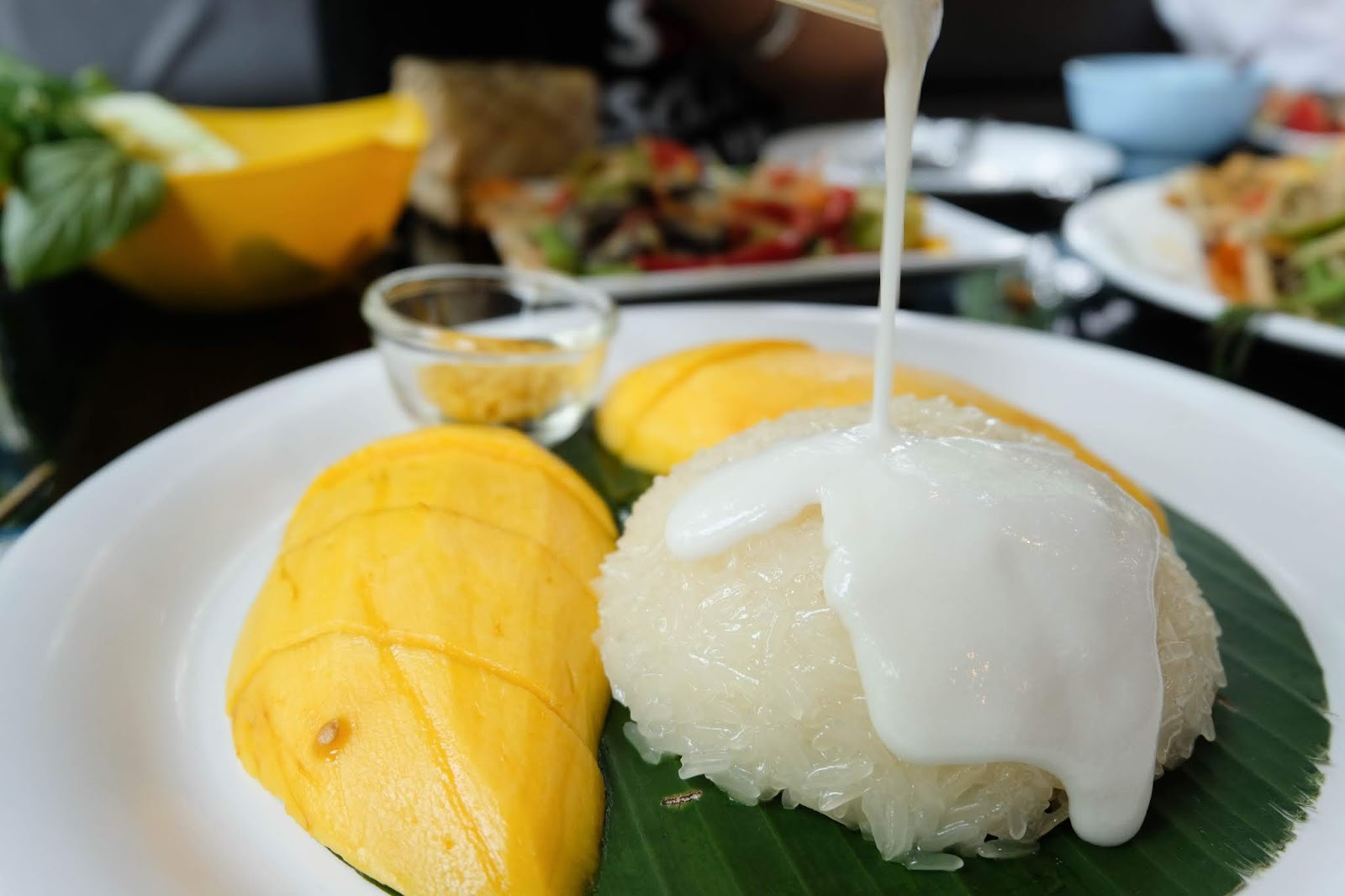 กินคาวไม่กินหวาน ได้อย่างไร ปิดท้ายที่ เมนู ข้าวเหนียวมะม่วง ฝีมือระดับ Guinness World Records เมูนข้าวเหนียว ได้รสชาติหวานมันพอดี มีความนุ่มและหอมหวานมัน...อยากบอกว่า มันอร่อยมาก ได้กินกับมะม่วงหวานๆ ฟินไป 3 ตลบ เคล็ดลับคือ ใช้น้ำกระทิล้วนๆ ไม่ผสมแป้ง เคี้ยวจนได้ที่ โรยด้วยถั่วทอง หรือ ถั่วเหลืองกรอบ ซึ่งเป็นสูตรเฉพาะของร้านอีกเหมือนกัน มีความกรุบกรอบ กินแล้วไม่แข็งกระด้างสะท้านฟัน เหมือนร้านทั่วๆไป สมแล้วที่ได้รับเชิญให้เป็นตัวแทนประเทศไทย เป็นผู้ทำหน้าที่ปรุงเสิรฟ์ให้นักท่องเที่ยวชาวจีนได้กินกันด้วยความประทับใจ