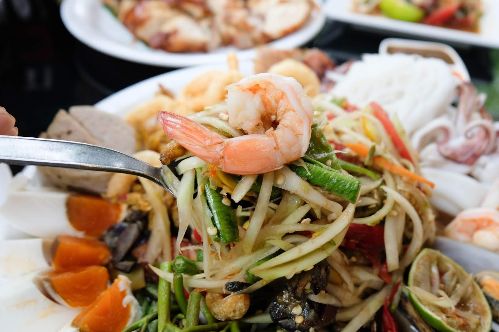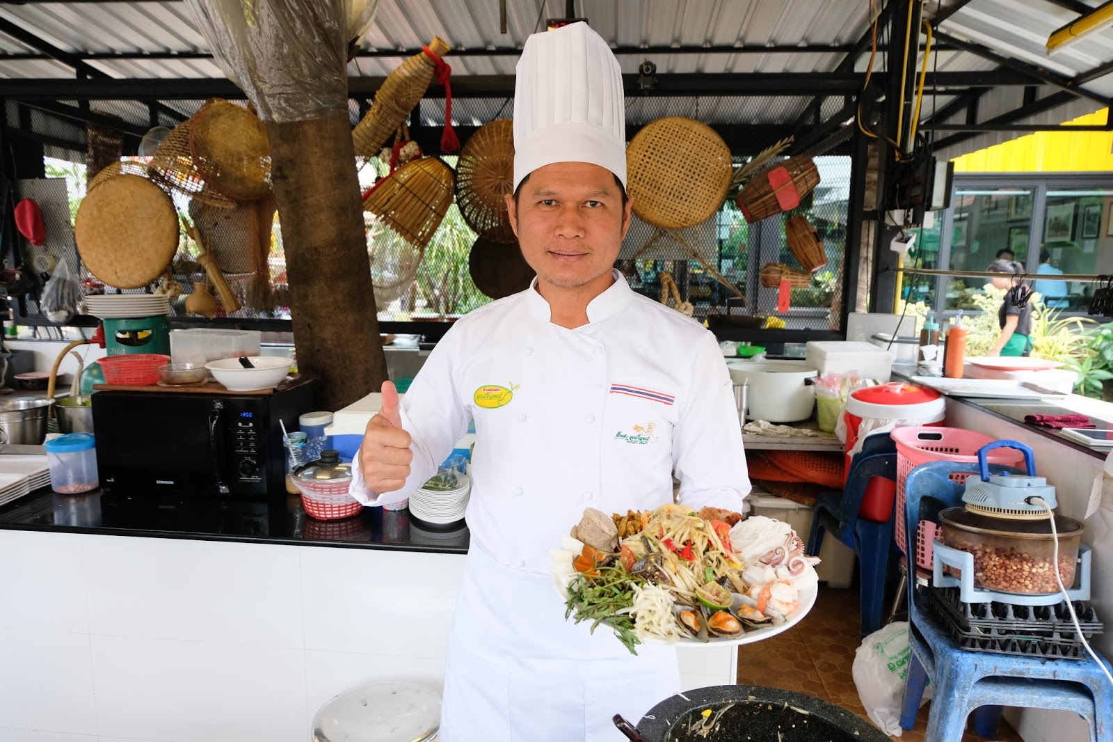 แน่นอน มาร้านส้มตำคุณกัญจณ์ แชมป์ส้มตำประเทศไทย ไม่สั่งส้มตำก็มาไม่ถึงแน่ๆ โดยที่ร้านจะมีส้มตำให้เลือกมากมาย อาทิ ส้มตำไทย ส้มตำมะพร้าวอ่อน ส้มตำปูปลาร้า มาถึงตรงนี้ ขอเปิดปากเม้าท์ดังๆ ว่า น้ำปลาร้า ของร้านนี้ ช่างสุดยอด มีความนัว..มีความละมุน ไม่หวาน ไม่เหม็นเขียว ไม่เหม็นคาว เป็นน้ำปลาร้าในฝันคน คนเลิฟส้มตำปูปลาร้า กันเลยทีเดียว ซักถามไป คุณกัญจณ์ ตอบอย่างภาคภูมิใจว่า เป็นปลาร้าที่ หมักและต้มเอง เป็นสูตรดั่งเดิม เป็นปลาร้าที่ตัวเองกินและมั่นใจว่า รสชาติแบบนี้ คือ “ที่สุด” และเร็วๆ นี้ จะผลิตออกขาย ใช้ชื่อว่า “ปลาร้าทิดกัญจณ์” แหม กินแล้วติดใจ ขอหอบกลับไปฝากแม่ที่บ้าน 1 แกลลอน