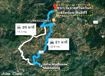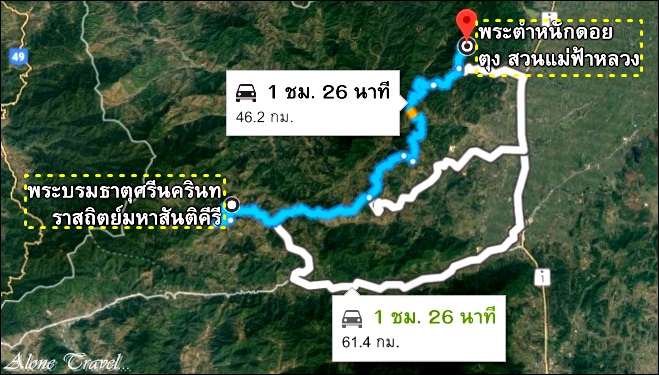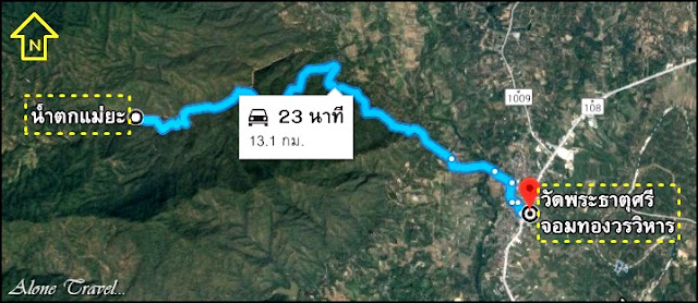 จากน้ำตกแม่ยะ ขับรถออกมาถนนใหญ่ประมาณ 20 นาที จะมีเจอ ทล. 108 ที่อำเภอจอมทอง แวะกราบนมัสการพระบรมธาตุศรีจอมทองเสียหน่อย