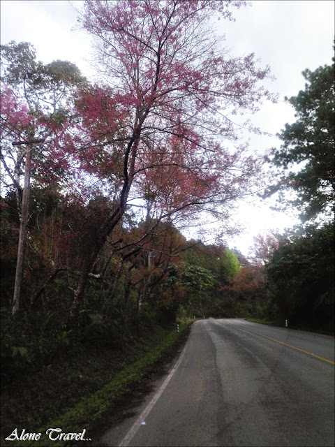 ช่วงที่ออกจากอ่างขาง ข้างถนนจะเจอต้นพระยาเสือโคร่งออกดอกชมพูสวยงาม