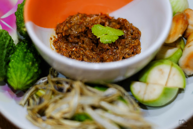 ว่าแล้วก็เปิดครัว หาของเท่าที่มี จะผักสด ไข่ต้ม ปลาแห้งใช้ได้หมดเลย เพราะของเหล่านี้เมื่อทานคู่กับน้ำพริกมะขามอ่อนที่รสชาติกลางๆ ไม่เผ็ดมากจนเกินไป มีส่วนผสมของเนื้อไก่บด รสชาติถูกปากทานได้ทุกคน เป็นน้ำพริกที่ทานคู่กับอะไรก็เข้ากันดีมาก