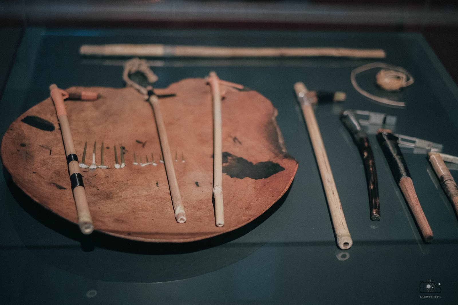 มีการจัดแสดงเครื่องมือที่ใช้สำหรับการสัก แบบต่างๆ