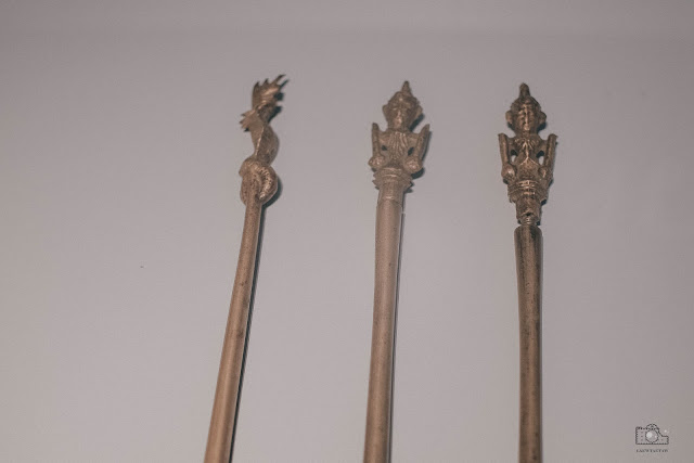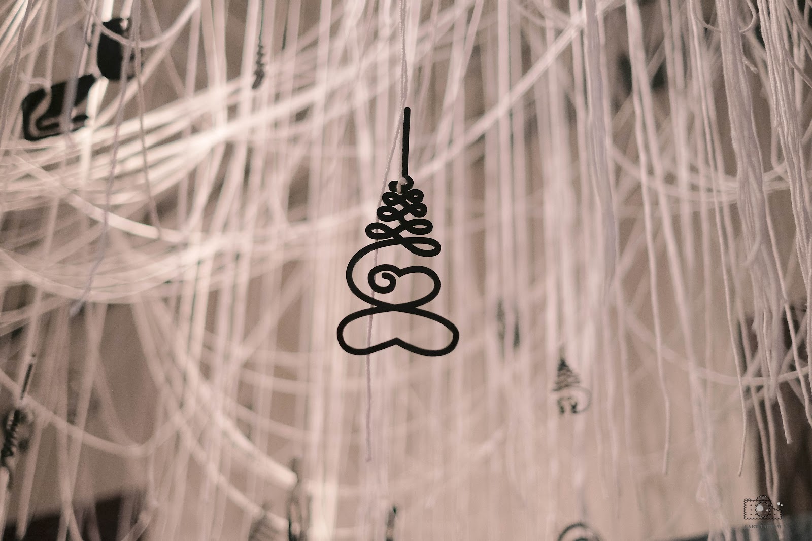 มองไปด้านบนจะเห็นสัญลักษณ์รูปรอยสักในแบบต่างๆห้อยเรียงรายพร้อมกับด้ายสีขาวที่สื่อถึงสวรรค์ค่ะ
