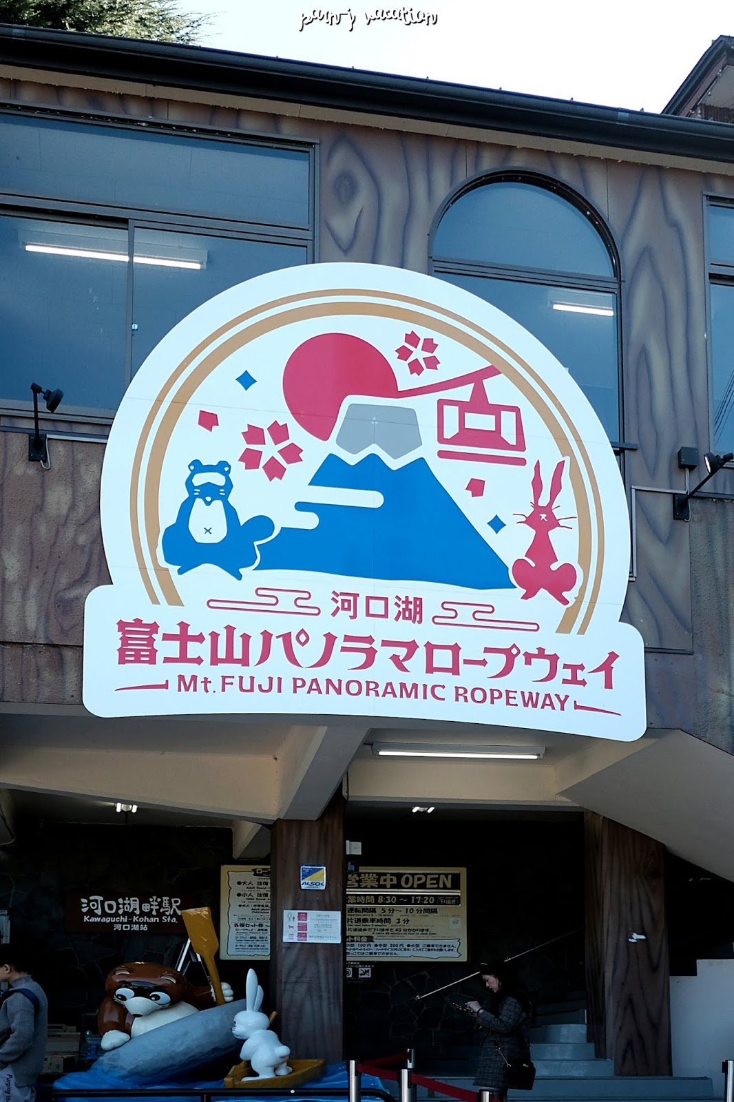 ซื้อตั๋วแล้วก็ขึ้นไปรอขึ้นกระเช้ากัน กระเช้าจะขนาดไม่ใหญ่มาก ขึ้นแค่แปปเดียวก็ถึงด้านบน ตั๋วจะเป็นแบบไป - กลับ ราคา ¥900 ต่อคน ตอนขึ้นก็เอาให้เจ้าหน้าที่เจาะ เช่นเดียวกับตอนลง ด้านบนเป็นจุดชมวิวกว้าง ๆ มีร้านขายขนมดังโงะ และร้านขายของฝาก มีดาดฟ้าให้ขึ้นไปดูฟูจิซังแบบเคลียร์ ๆ สามารถหยอดเหรียญส่องกล้องไปดูฟูจิซังได้ ส่องได้ไกลมากแก ¥100 หยอดไปแล้วแบ่งกันดู 4 คนเวียนไป