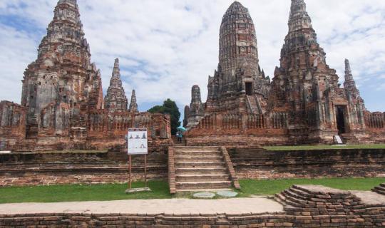 สั่งพร้อมข้าวเปล่า 2 จาน 30 กุ้ง 2 ตัว 1,000 ต้มยำกุ้ง 180 ทอดมัน 120 โค้ก 3 ขวด + น้ำแข็ง 55 มื้อนี้ราคา 1,385 บาทค่ะหลังจากอิ่มหนำสำราญดีแล้ว เราก็มุ่งหน้าต่อไปที่วัดไชยวัฒนารามค่ะ ตามความรู้สึกแล้ว ส้มชอบที่นี่ที่สุดค่ะ สวย มีมนต์ขลัง อากาศดีมาก ถึงแม้ว่าตอนลงรถจะร้อน แต่พอเดินเข้าไปข้างในแล้ว อากาศดี เย็นสบายมากเลยค่ะ ยิ่งมีแม่น้ำด้านข้างกับวิวกว้างๆ ด้วย ยิ่งทำให้รู้สึกดีมากกกกกก ที่นี่มีค่าเข้านะคะ คนไทย 10 บาท ต่างชาติ 50 บาทค่ะ เข้าไปชมความงามของวัดไชยวัฒนารามกันค่ะ