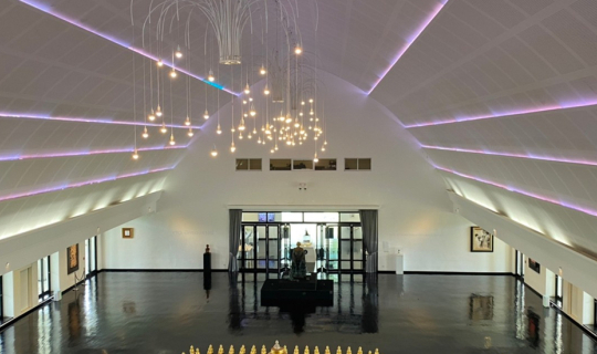 ทางด้านในเป็นลานอเนกประสงค์สำหรับทำกิจกรรม และโซนจัดแสดงศิลปะเทิดพระเกียรติพระบาทสมเด็จพระอยู่หัวรัชกาลที่ 9 และพระบาทสมเด็จพระเจ้าอยู่หัวรัชกาลที่ 10 ประกอบกับผลงานเชิงปริศนาธรรมหลายชิ้นด้วยกัน มีโซนจัดแสดงทั้งหมด 3 ชั้น ประกอบด้วยผลงานเทคนิคต่าง ๆ เช่น งานปั้น งานเรซิ่น เทคนิคสีน้ำมัน ศิลปะประยุกต์ ตลอดจนภาพถ่ายขณะประกอบพระราชกรณียกิจ