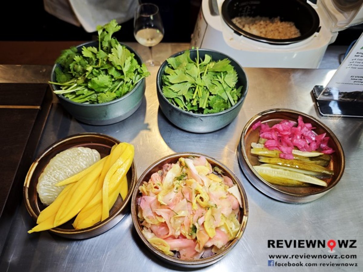 เพิ่มเติมด้วยผักชี, คื่นช่าย, มะม่วง, ส้มโอ, ขิงและมะละกอดอง