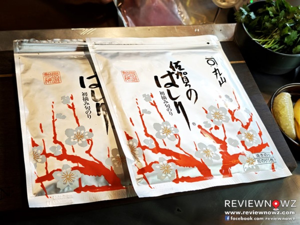 สาหร่ายที่ใช้ในครั้งนี้ และในส่วนของข้าวซูชิเชฟใช้ vinegar ของ VIVIN Grocery ที่ลองชิมข้าวซูชิแล้วจะมีความหอมพอชัดเจนอยู่ ชิมแล้วรสชาติไม่จัดพอกลมกล่อม เป็นอีกไอเดียที่น่าสนใจที่นำ vinegar มาใช้แตกแต่างจาก vinegar สำหรับซูชิโดยเฉพาะ